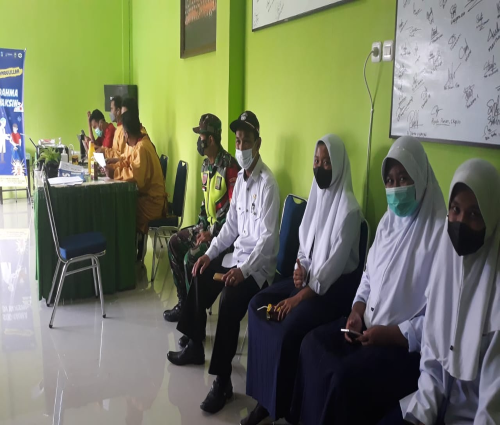 duduk di kelas IX melakukan vaksinasi tahap pertama di Puskesmas Biji Nangka,
